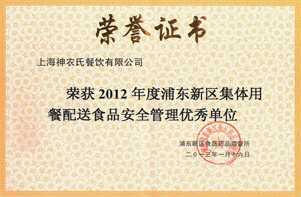 2012食品安全管理優(yōu)秀單位
