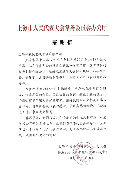 上海市人民代表大會感謝信