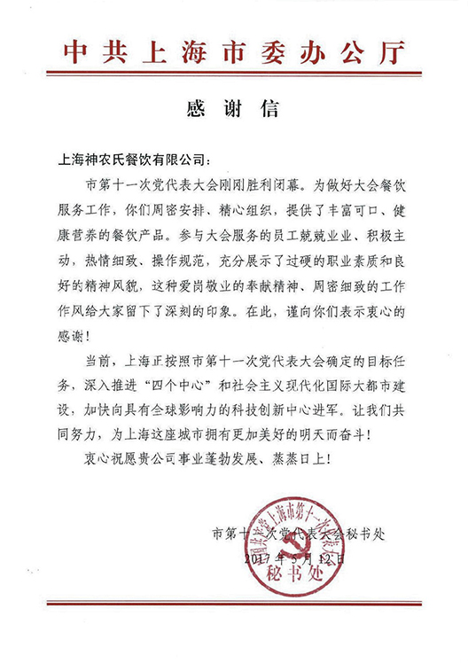 中共上海市感謝信