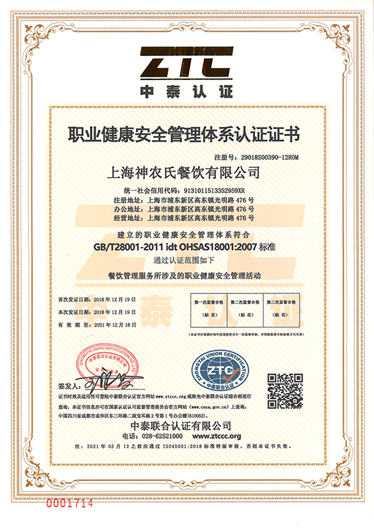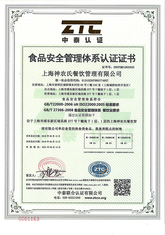食品安全管理體系認(rèn)證書