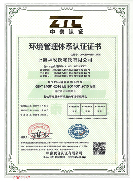 環(huán)境管理體系認(rèn)證書
